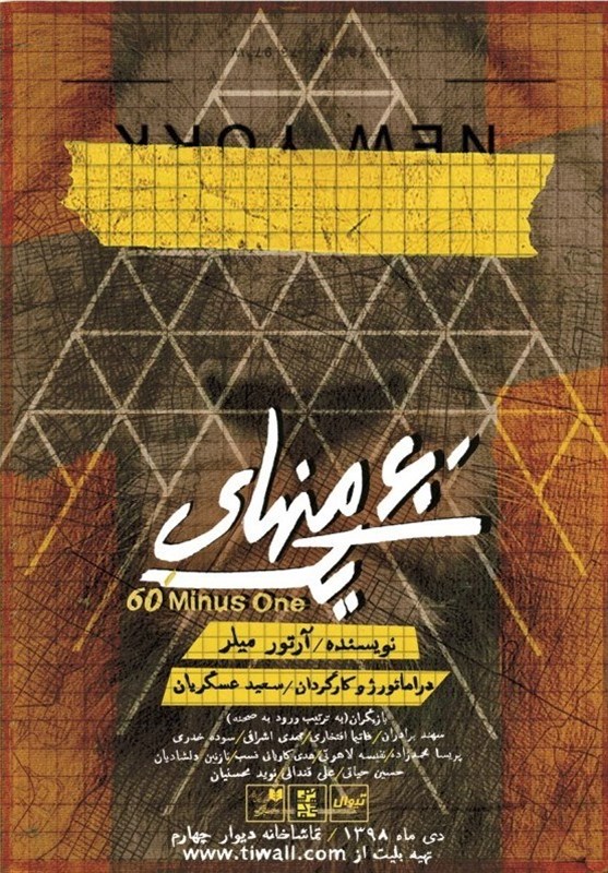 دیگر نمایش مجموعه تئاتر دیوار چهارم، نمایش «شصت دقیقه منهای یک» اثری از آرتور میلر و به ترجمه مهدی اشرافی است. این اثر نیز از 1 تا 30 دیماه، هر شب رأس ساعت 21:15 اجرا میشود. کارگردانی نمایشی برعهده سعید عسکریان است.