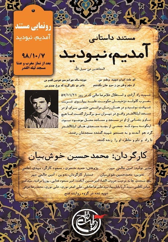 محمدحسین خوشبیان، کارگردان و مستندساز در گفتوگو با خبرنگار فرهنگی باشگاه خبرنگاران پویا در مورد مستند جدید خود، «آمدیم نبودید» گفت: از سال 1390 پژوهشهایی در زمینه تمدن اسلامی داشتم و وارد موضوع جامعهشناسی انقلاب اسلامی شدم؛ در این بین با مسجدی در شرق تهران آشنا شدم که خاطرات بسیاری از تاریخ انقلاب را در دل خود داشت؛ مسجد «لیلةالقدر» یکی از مساجد ریشهدار در محله نیروهوایی تهران است که علاوه بر ایفای نقش گسترده در روزهای منتهی به انقلاب، پس از انقلاب نیز فعالیتهای فرهنگی زیادی در تمام ردههای سنی دارد و مسجدی پویا بهشمار میرود.