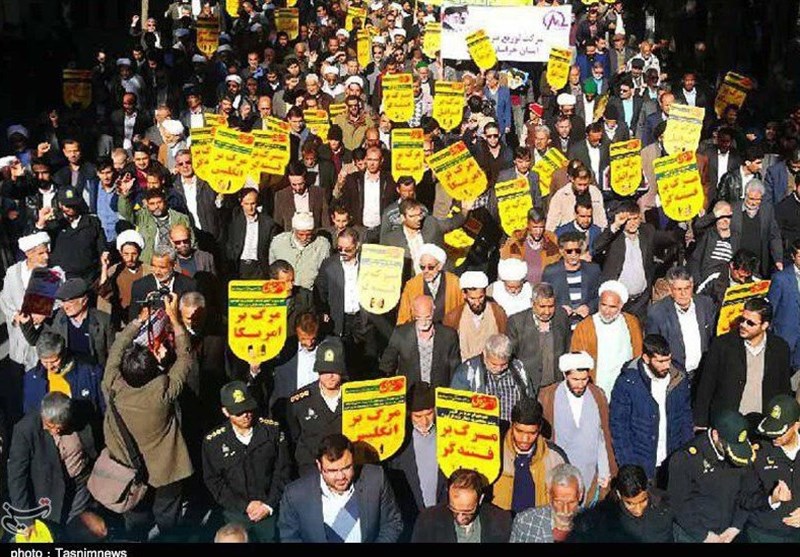 دوربین‌ها از به تصور کشیدن این جمعیت قاصر است و قلم‌ها هم نمی‌توانند حضور مردم را وصف کنند. همه آمده‌اند با مشتی گره کرده شعار همیشگی ملت ایران "مرگ بر آمریکا" و "مرگ بر اسرائیل" را سر می‌دهند.