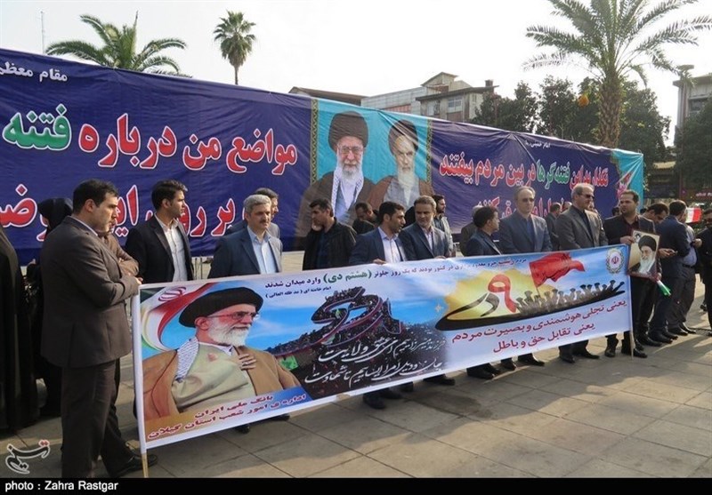به گزارش خبرگزاری تسنیم از رشت، مردم ولایتمدار گیلان امروز همزمان با سراسر کشور در راهپیمایی 9 دی حضور پیدا کردند و با سر دادن شعارهای ضداستکباری، انزجار خود را از دشمنان انقلاب به نمایش گذاشتند.