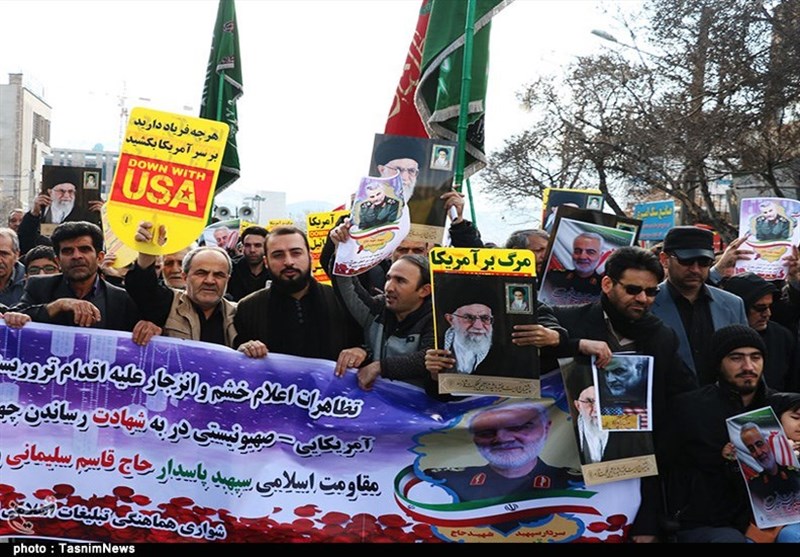 به گزارش خبرگزاری تسنیم از اراک، در پی شهادت سپهبد حاج قاسم سلیمانی توسط آمریکای جنایتکار و تروریست، مردم شهرستان اراک امروز پس از اقامه نماز جمعه به خیابانها آمده و ضمن راهپیمایی انزجار خود از شیطان بزرگ را اعلام کردند.