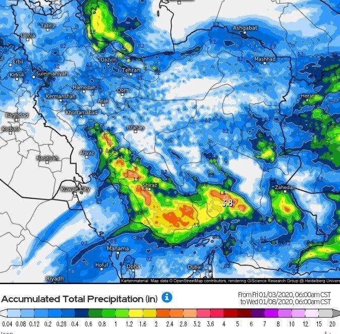 🔹 وضعیت جوی استانها: اطلاعات ماهوارهای از شرایط جوی کشور نشان میدهد امروز 98/10/14 فعالیت سامانه بارشی مستقر در کشور در اغلب نقاط کشور قابل توجه است و احتمال سیل و آبگرفتگی معابر در جنوب و جنوبغربی ایران نیز وجود دارد؛ به این ترتیب شرایط جوی استانها در 24 ساعت آینده این گونه است.
