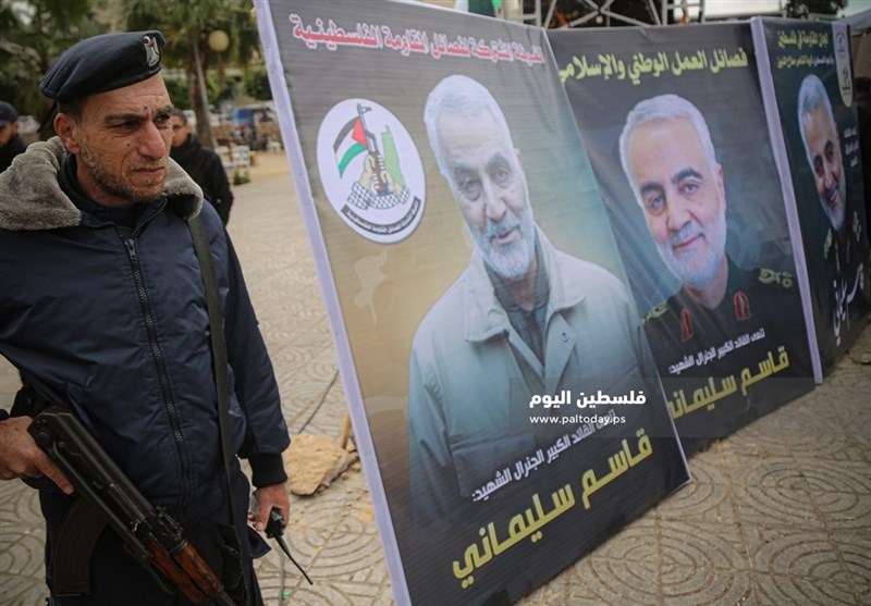 مردم نوار غزه با برگزاری مراسم بزرگداشت شهید سپهبد حاج قاسم سلیمانی و همرزمانش، پرچم‌های آمریکا و رژیم صهیونیستی را به آتش کشیدند، یکی از رهبران حماس تاکید کرده بود که خدمات شهید سلیمانی به فلسطین فراتر از تصور انسان است.