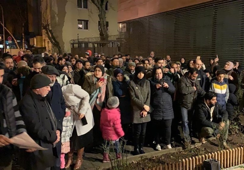 علاقه مندان سردار شهید قاسم سلیمانی در برابر سرکنسولگری ایران در فرانکفورت تجمع کردند.