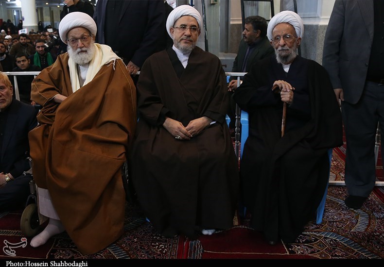 آیت الله مصباح یزدی رئیس موسسه امام خمینی(ره)،آیت الله اعرافی مدیر حوزه های علمیه سراسر کشور، آیت الله شیخ عیسی قاسم رهبر شیعیان بحرین، آیت الله سعیدی امام جمعه قم، حجت الاسلام شیخ معین دقیق نماینده حزب الله لبنان در این مراسم حضور داشتند.