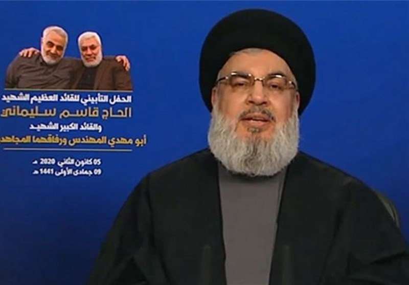 سید حسن نصرالله دبیرکل حزبالله لبنان در سخنرانی خود در این مراسم تاکید کرد که مراسم امروز برای یک فرمانده جهانی و جهادی بزرگ یعنی حاج قاسم سلیمانی فرمانده نیروی قدس سپاه پاسداران انقلاب اسلامی و حاج ابومهدی مهندس نایب رئیس جنبش حشد شعبی عراق و یاران و رزمندگان همراه آنها برگزار میشود.