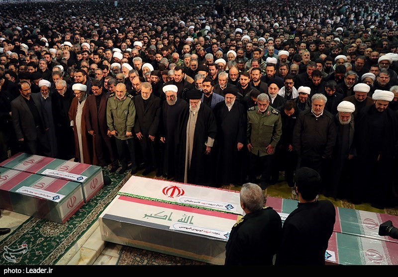 به گزارش خبرنگار فرهنگی باشگاه خبرنگاران پویا، صبح امروز(دوشنبه) رهبر معظم انقلاب با حضور در دانشگاه تهران بر پیکر فرماندهان و شهدای جبهه مقاومت سپهبد حاج قاسم سلیمانی، ابوالمهدی مهندس، حسین جعفرینیا، شهرود مظفرینیا، هادی طارمی و وحید زمانیان نماز خواندند، رهبر معظم انقلاب بعد از اقامه نماز، با پیکر شهدای آسمانی سپهبد سلیمانی، ابوالمهدی مهندس و دیگر شهیدان وداع کردند.