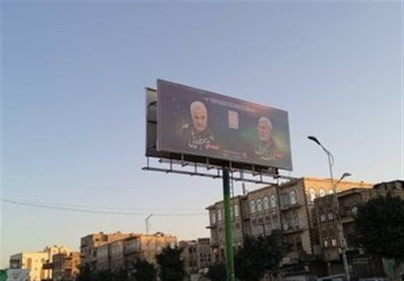 در همین راستا تصاویر بسیار بزرگی از شهید سپهبد قاسم سلیمانی و ابومهدی المهندس در مرکز پایتخت یمن نصب شده است.