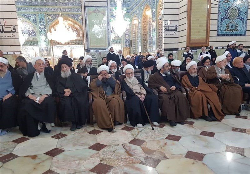 حضرات آیات مکارم شیرازی، سبحانی  و علوی گرگانی، نمایندگان بیوت مراجع تقلید و برخی از اعضای جامعه مدرسین حوزه علیمه قم برای وداع با پیکر مطهر شهدای مقاومت وارد حرم مطهر شدند‌.
