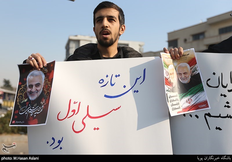 مردم میگویند: این انتقام قطرهای بود از یک اقیانوس، آمریکا باید بداند که ضربههای بعدی را نیز خواهد خورد و این تازه ابتدای راه است، اگر آنها دست سردار را قطع کردند ما پای آنها را از منطقه قطع میکنیم.