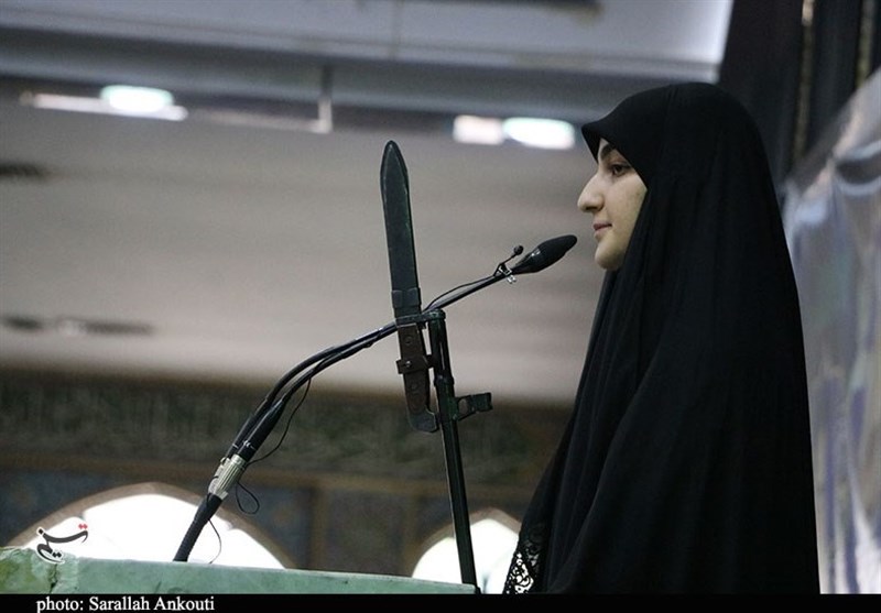 دختر سردار سلیمانی با بیان اینکه امروز من زینب حاج قاسم به شما میگویم که داستان کربلا در عصر ما دوباره تکرار شده افزود: عملدار محور مقاومت تکه تکه شد تا ولی امرش آسیب نبیند، عملدار رفت تا ایران بماند، علمدار رفت تا ایرانی بماند و ناموس حفظ شود.