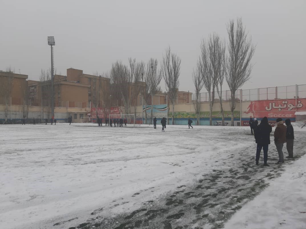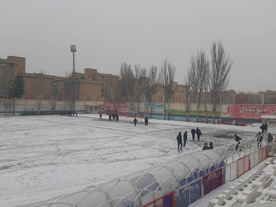 * در حالی که همه منتظر تعیین تکلیف این دیدار از سوی مسئولان برگزاری بودند، بازیکنان تیم فجر سپاسی با حضور در زمین برف‌بازی کردند.