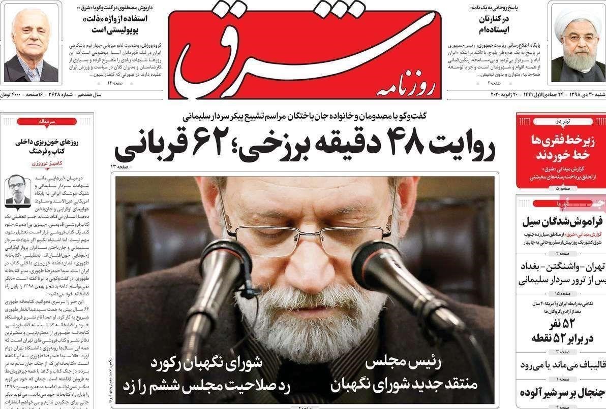صفحه نخست روزنامه‌های دوشنبه 30 دی ماه