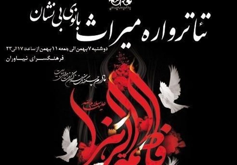 نمایش تئاترواره میراث (بانوی بینشان) از 7 تا 11 بهمن ساعت 19 و 21 در سالن خلیجفارس فرهنگسرای نیاوران اجرا میشود. حضور در این برنامه آزاد و رایگان است و علاقهمندان میتوانند جهت رزرو این برنامه به سایت تیوال و یا گیشه فرهنگسرا مراجعه کنند.
