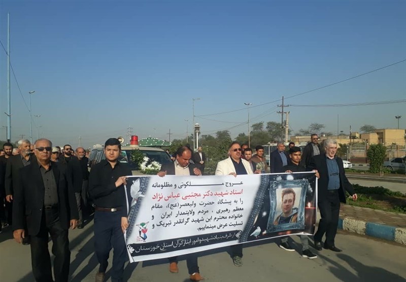 به گزارش خبرگزاری تسنیم از اهواز، آئین تشییع پیکر پاک و مطهر دانشجوی شهید مجتبی عباسنژاد از شهدای حادثه دلخراش سقوط هواپیمای اوکراینی در اهواز برگزار شد.