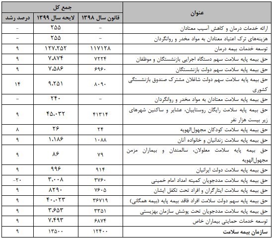 جزییات بودجه سال 99 بیمه سلامت در ادامه قابل مشاهده است.