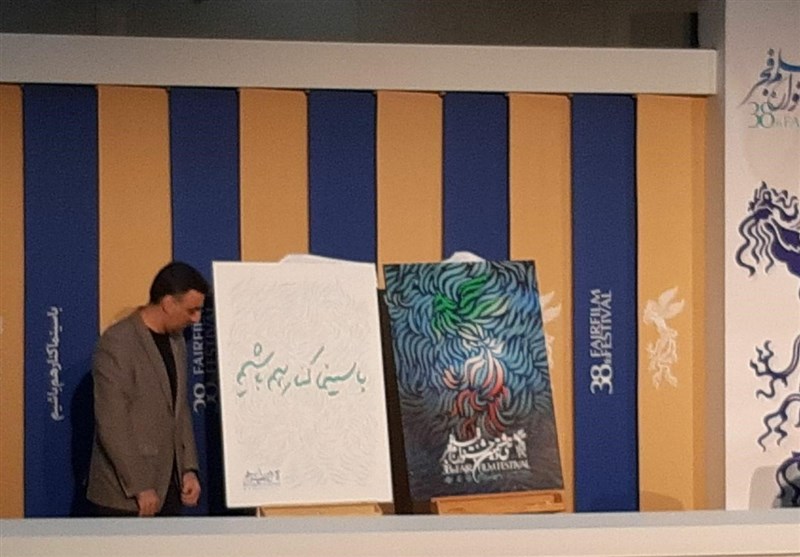 همینطور در آیین رونمایی از پوستر جشنواره فیلم فجر از شعار امسال جشنواره با عبارت : «با سینما کنار هم باشیم» نیز رونمایی شد.