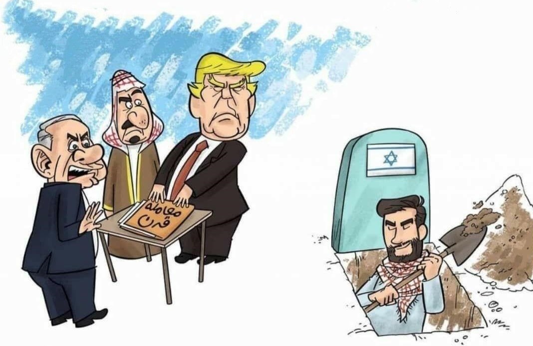 فعالان در فضای مجازی به شیوههای مختلف از جمله در قالب کاریکاتور به توطئه جدید آمریکا، رژیم صهیونیستی و رژیمهای مرتجع و سازشکار عرب واکنش نشان دادهاند.