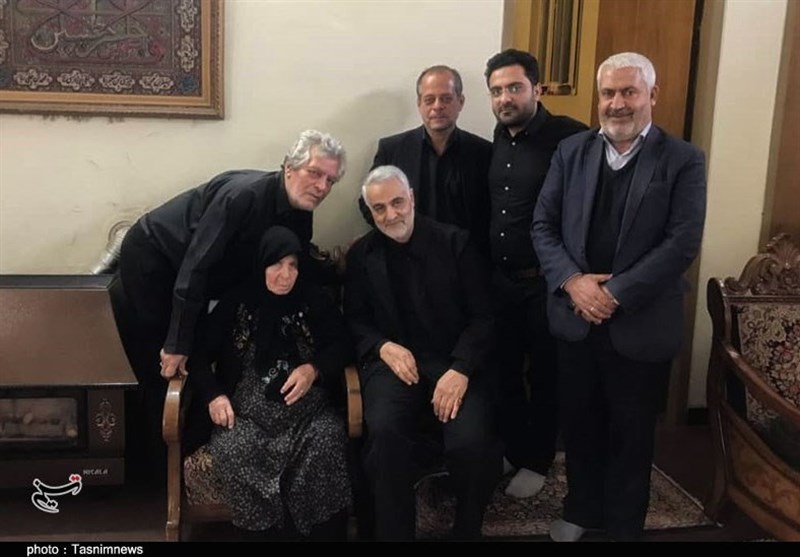 وقتی رسیدیم دیدم که حاج قاسم مقایل خانه روی پا ایستاده، به سرعت در خانه را باز کردم که دیدم سردار پشت فرمان ماشین من نشست و ماشینی را مادرم در آن بود به داخل خانه آورد و به مادرم گفت "من مصطفی پسرت هستم" بعد کمک کرد تا مادر را روی ویلچر بنشانیم و خود سردار مادر را به داخل خانه برد و کنار صندلی مادر روی زمین نشست.