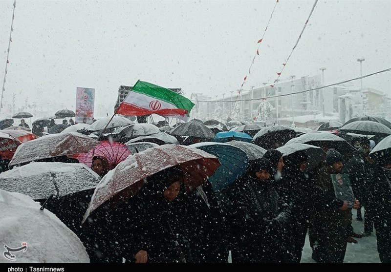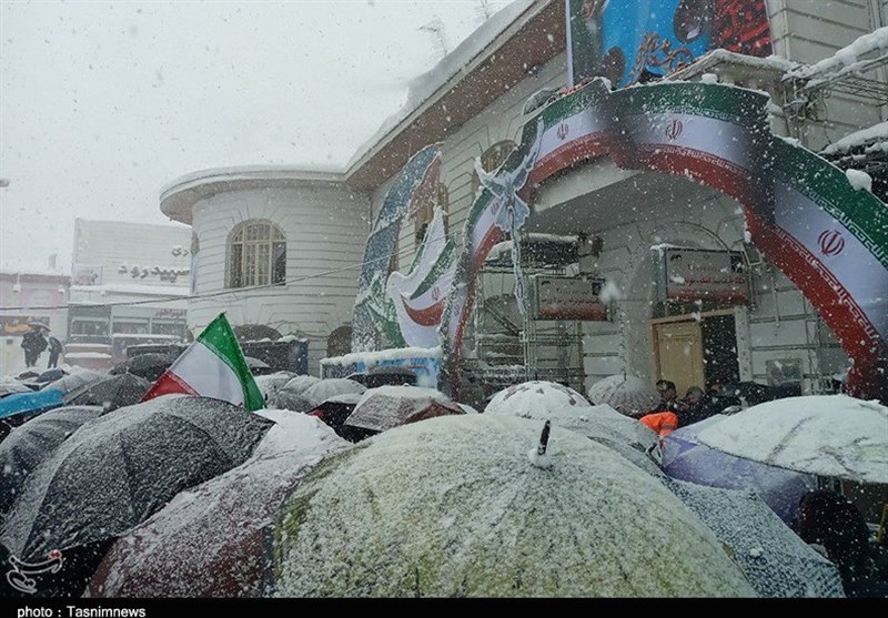 راهپیمایی گسترده مردم گیلان در یومالله 22 بهمن زیر بارش شدید برف