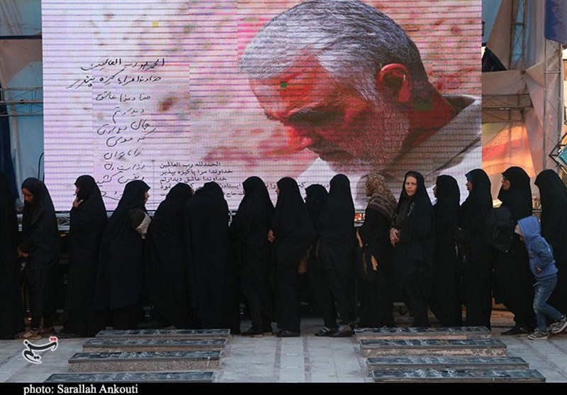 گلزار شهدای کرمان در عصر پنجشنبه بیشتر از روزهای گذشته شاهد صحنه‌های ناب دلدادگی در مزار حاج قاسم است و صف عاشقی هر لحظه طولانی‌تر می‌شود.