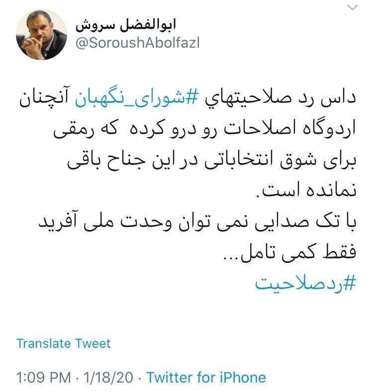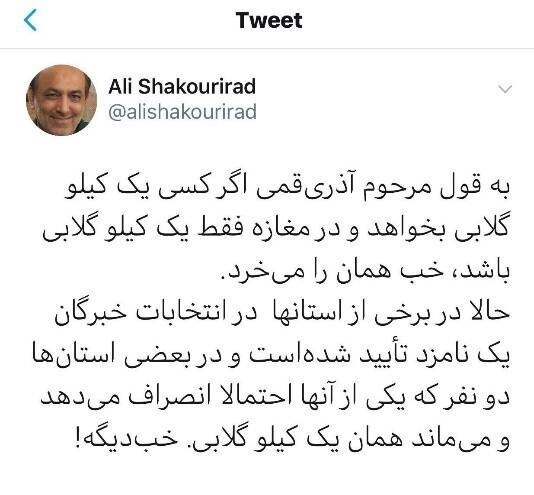 و در پایان اینکه با این طراحی چند مرحله ای که آنان انجام داده اند در همه مراحل ادعای رد صلاحیت ها و نداشتن کاندیدا ها را به عنوان سرپوشی جهت طراحی خود و اختلافات درونی این جریان قرار داده اند.