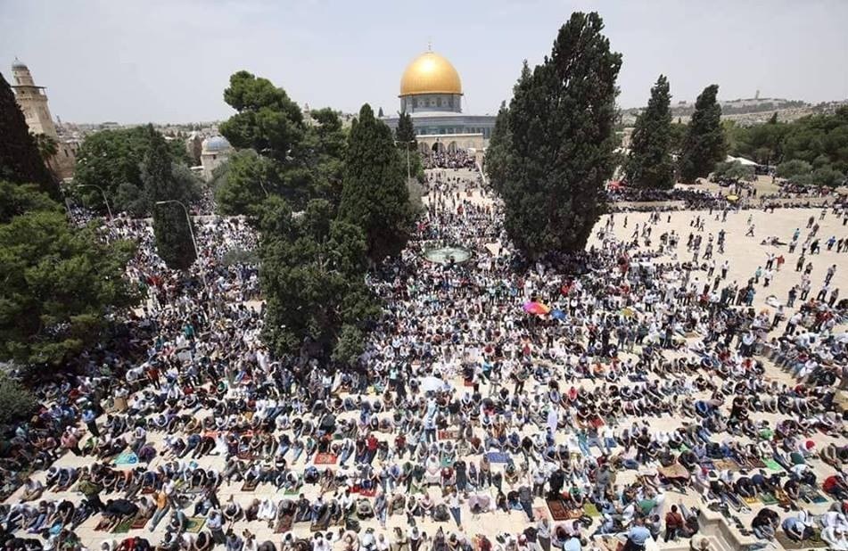 به گزارش گروه بین الملل خبرگزاری تسنیم به نقل از پایگاه خبری فلسطین الیوم، اداره اوقاف اسلامی قدس اشغالی از مشارکت بیش از 50 هزار نمازگزار فلسطینی، آیین نماز جمعه را در مسجدالاقصی در حالی برپا کردند که اشغالگران نظامیان خود را در درهای ورودی و راههای منتهی به مسجد مبارک مستقر کرده و در برابر ورود جوانان مانع تراشی کردند.