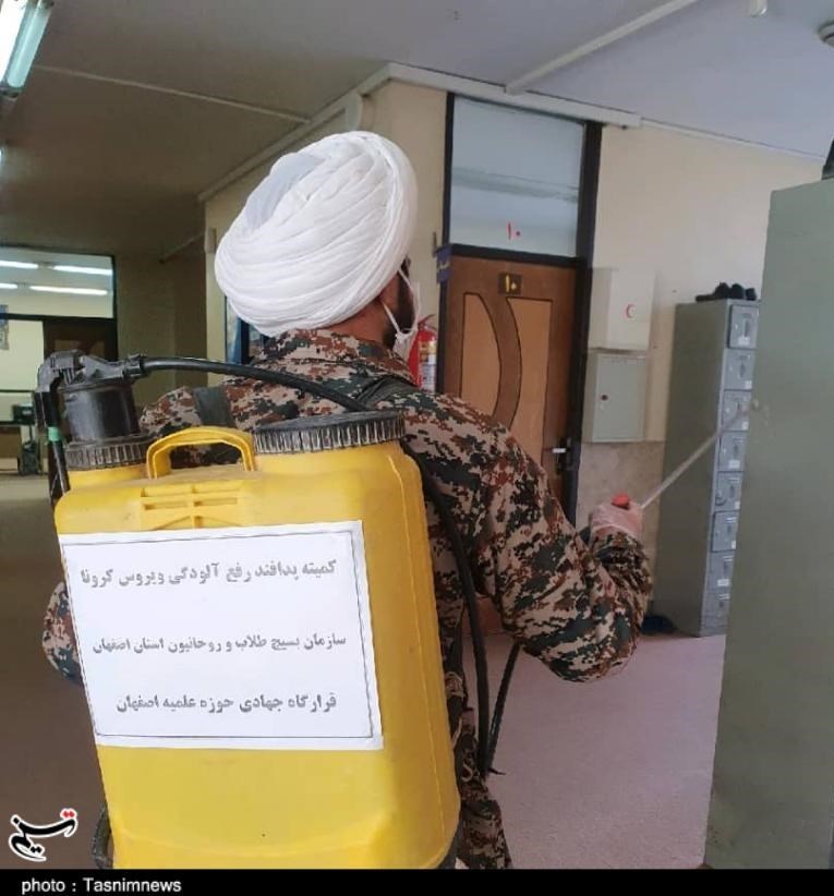 در کنار مردم طلاب نیز قرار دارند آنها نیز فعالیت و خدمات خود را آغاز کردهاند و به یاری مردم آمدهاند. بههمین منظور در اصفهان 250 طلبه جهادی در قالب 15 گروه جهادی با هدف مبارزه با ویروس کرونا و ضدعفونی کردن معابر شهر، ادارات و بیمارستانها فعالیت خود را آغاز کردهاند و خدمت رسانی میکنند.