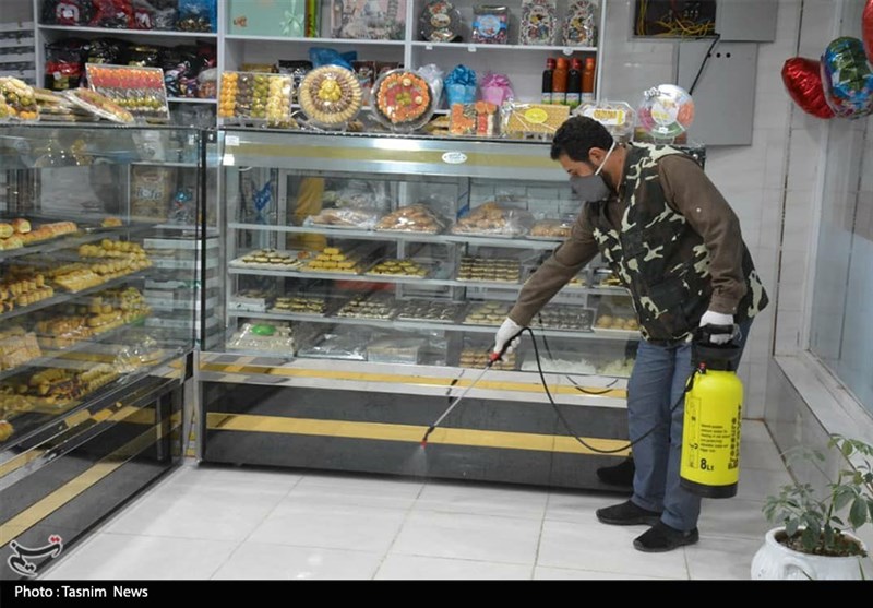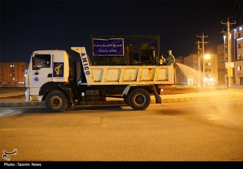 ضدعفونی و گند زدایی معابر شهر توسط قرارگاه مدافعان سلامت قزوین + تصاویر