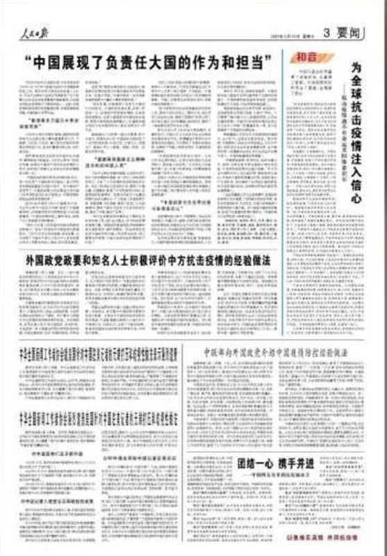 روزنامه خلق همچنین نوشته است: از زمان شیوع ویروس کرونای جدید تاکنون، چین و ایران از یکدیگر حمایت و در مبارزه با بیماری این همه گیر به یکدیگر کمک کرده اند.
