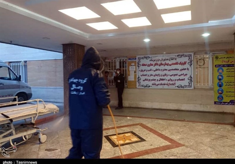 اعضای گروه جهادی وصال صحنه برای مقابله با کروناویروس جدید با حضور در اماکن عمومی و بیمارستان صحنه بخش‌های این بیمارستان را ضدعفونی کردند.