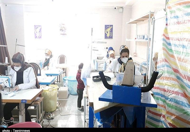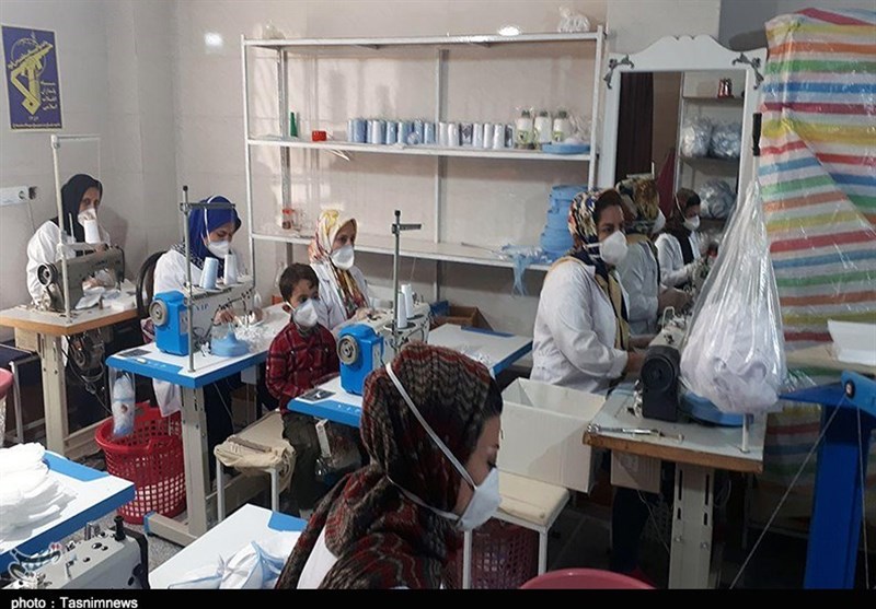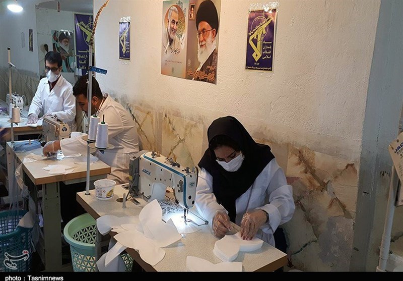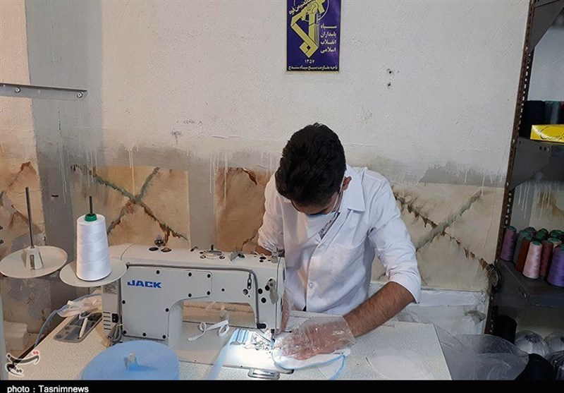 راه‌اندازی کارگاه‌های تولید ماسک توسط سپاه در سنندج به روایت تصاویر