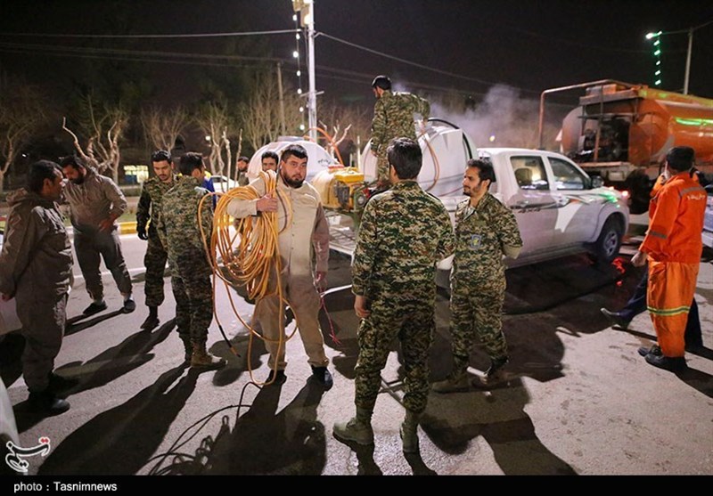 گندزدایی و ضدعفونی معابر شهرهای کهگیلویه و بویراحمد توسط طلاب بسیجی