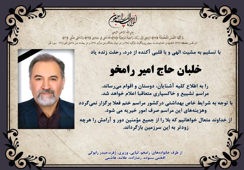 به گزارش باشگاه خبرنگاران پویا، سردار پاسدار خلبان امیر رامخو ساعاتی پیش به دلیل ابتلا به بیماری کرونا دعوت حق را لبیک گفت.