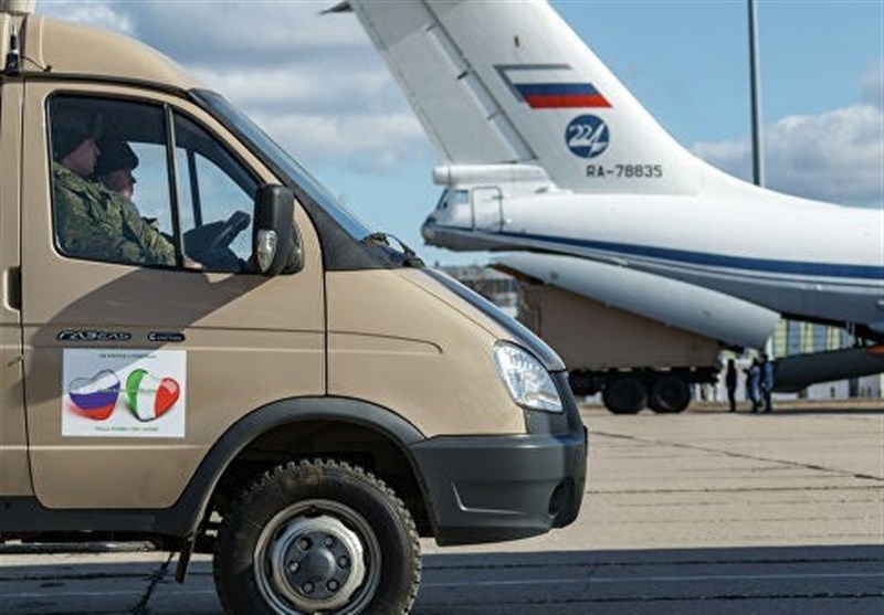 به گزارش گروه بینالملل خبرگزاری تسنیم به نقل از روزنامه «ایزوستیا»، چاپ مسکو، وزارت دفاع روسیه اعلام کرد که هفت فروند هواپیمای ترابری نظامی ایل-76 نیروهای هوا-فضای این کشور، از روز گذشته متخصصان و تجهیزات ضروری برای مبارزه با گسترش ویروس کرونا را از روسیه به رم منتقل کردند.