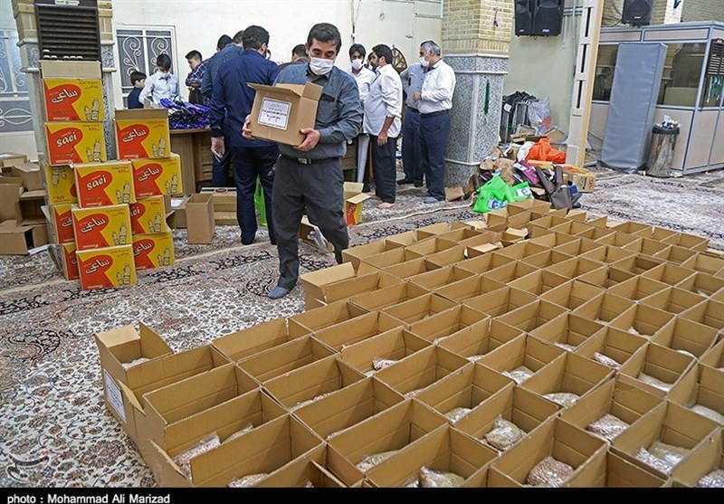 بسته‌بندی و توزیع بسته‌های اقلام غذایی و بهداشتی در میان نیازمندان قم+تصاویر‌