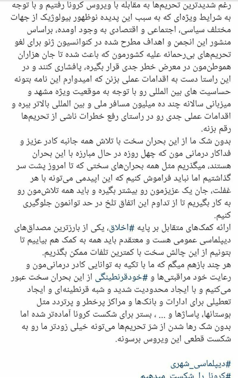 شهردار مشهدمقدس در پستی اینستاگرامی به نامه‌نگاری خود با انجمن کلانشهرهای جهان در مورد وضعیت این شهر و ضرورت اقدام عملی برای رفع تحریم‌ها خبر داد.