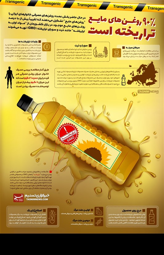 - با توجه به اینکه تقریباً همۀ (بیش از 95درصد از) روغن خوراکی کشور وارداتی است، و تقریباً همۀ برندها از محصولات تراریخته استفاده میکنند، عبارت «وارد کردن آسیب جدی و جبرانناپذیر بر تولید و فعالیت سایر کارخانجات و تولیدکنندگان محصولات غذایی که مغایر با سیاستهای کلی کشور در رونق و جهش تولید» دقیقاً حمایت از کدام «تولید داخلی» را مد نظر دارد؟ آیا روغنهایی که عموماً از مبدأ آمریکای جنوبی، یا با عاملیت عربستان سعودی وارد کشور میشود، مشمول عنوان تولید داخلی است؟! آیا بذرهایی که توسط کمپانی یهودی مونسانتو در کشورهای مختلف دنیا کشت میشود یا توسط تراستهای صهیونیستی بدنام مورد بهرهبرداری و توزیع در دنیا قرار میگیرد (که بیش از 60درصد محصولات تراریخت در بازار دنیا را دربرمیگیرد) مصداق تولید ملی و ایرانی است؟! (برای اطلاع از کنش این شبکۀ آمریکایی {پروندۀ جنگ جهانی غذا} و {پروندۀ مزرعۀ پدری} در خبرگزاری تسنیم را ببینید)