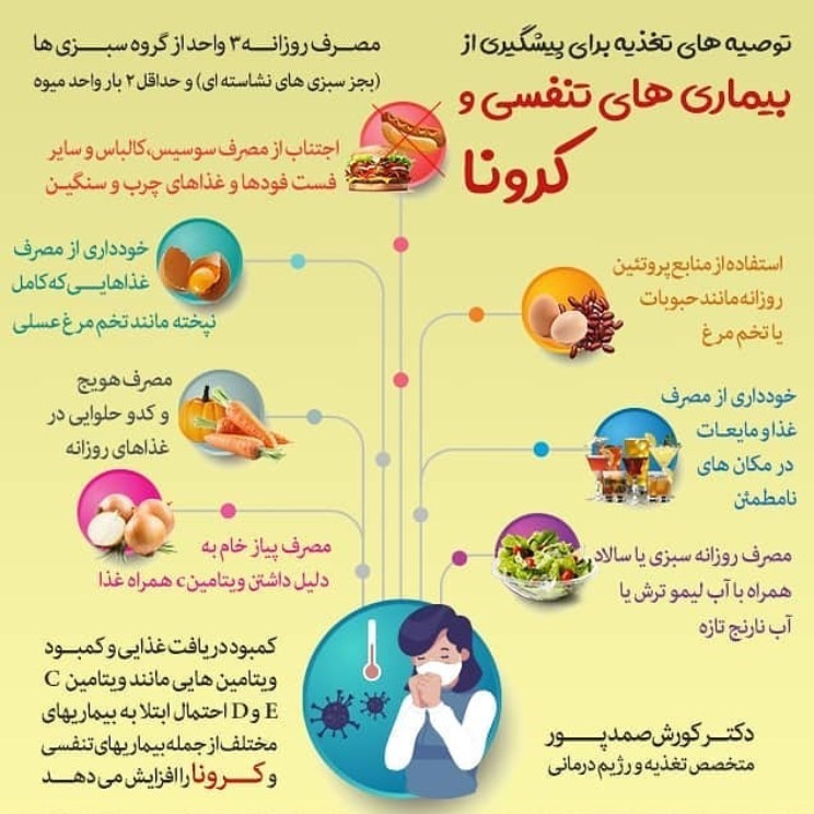 «کمبود دریافت غذایی و ویتامین‌هایی مانند ویتامین C ،D و E احتمال ابتلا به بیماری‌های مختلف از جمله بیماری‌های تنفسی و کرونا را افزایش می‌دهد».