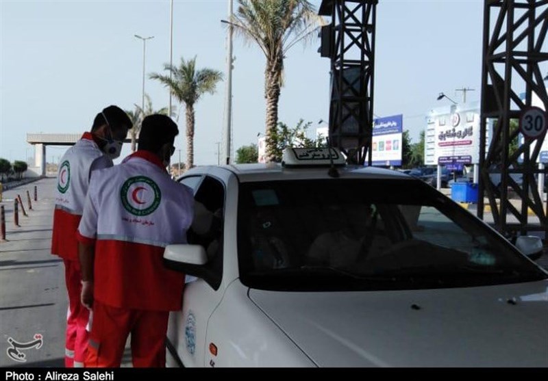 داوطلبان جمعیت هلال احمر استان هرمزگان در مبادی ورودی شهرهای خود با اجرای طرح غربالگری از خود و همشریان خود در مقابل ویروس کرونا پاسداری میکنند.