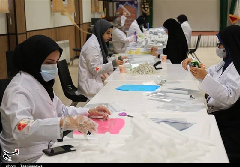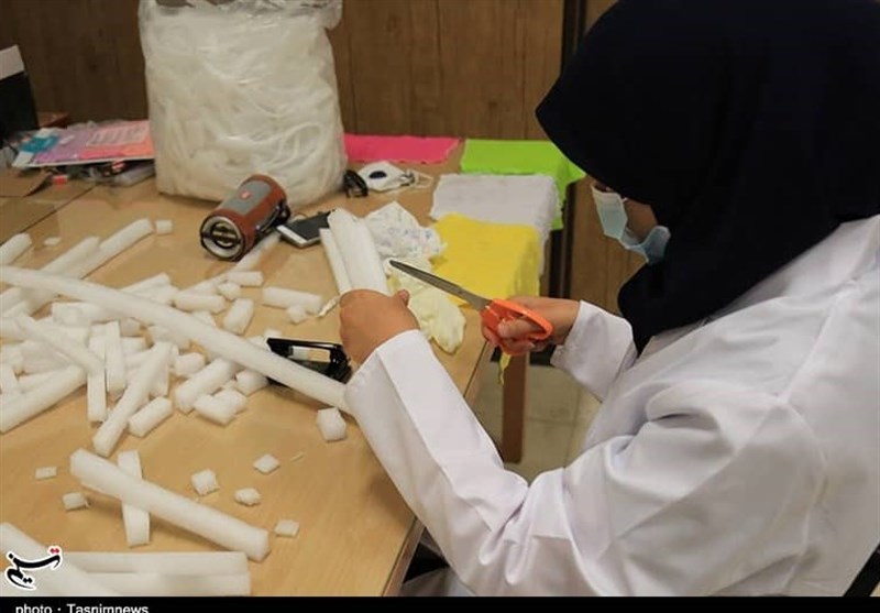 یکی از این کارگاه‌ها، کارگاه جهادگران شمیم سلامت حضرت ولی‌عصر (عج) در فرهنگسرای قدس است که با جدیت و همت در حال تامین نیازهای بیمارستانی هستند.