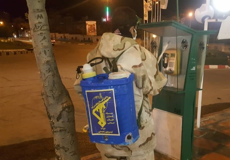 اقدامات سپاه کردستان در روزهای کرونایی/ از ضدعفونی معابر تا توزیع محلول ضدعفونی