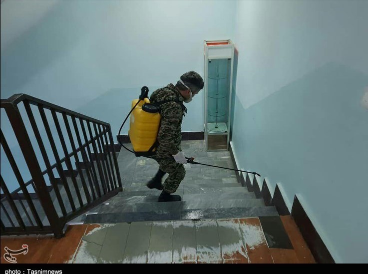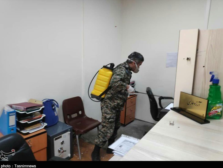 ضدعفونی دانشگاه‌ البرز توسط پاسداران لشکر 10 سیدالشهداء به‌روایت تصویر