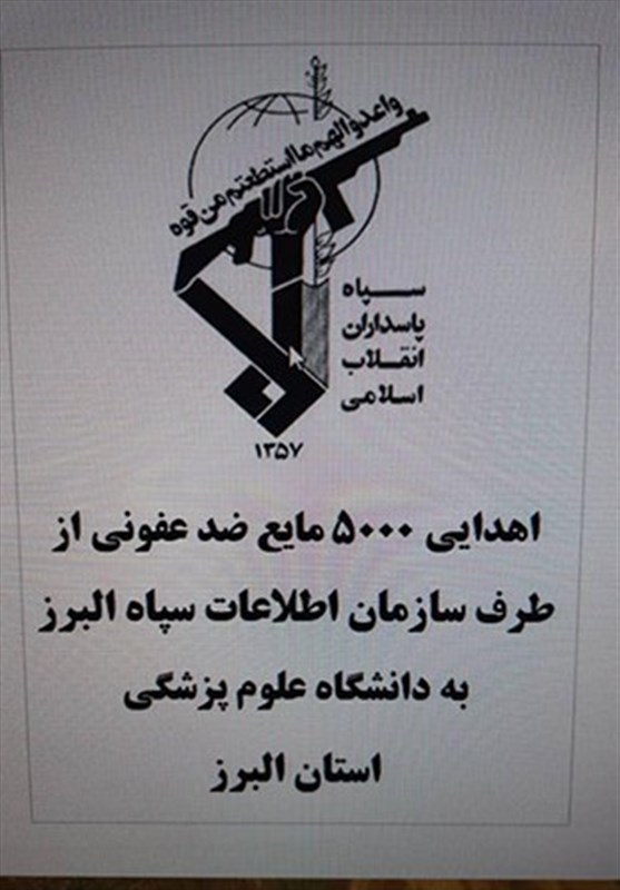به گزارش خبرگزاری تسنیم از کرج، در شب میلاد منجی عالم بشریت حضرت مهدی موعود(عج)، سربازان و پاسداران گمنام امام زمان در سازمان اطلاعات سپاه استان البرز 5000 بطری محلول ضدعفونی کننده را در راستای کمک به بخش درمانی به دانشگاه علوم پزشکی البرز اهدا کردند.