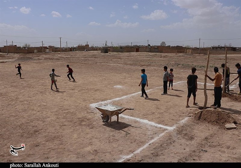 حاشیه شهر کرمان در محدود شهرک صنعتی بچه‌های دست بدست هم دادند تا با پول‌های اندک و دست‌های کوچک خودشان زمین خاکی فوتبالی را آماده کرده و بتوانند اوقات فراغت خود را در آن سپری کنند.
