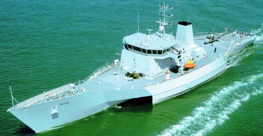 تریتون 97 متر طول و 2236 تن جابه‌جایی دارد. مهمترین شناور تریماران نظامی رده (کلاس) ایندیپندنت ساخت آمریکا با 127 متر طول و تناژ جابه‌جایی بیشینه 3104 تن است که در سال 2008 اولین فروند آن به نیروی دریایی این کشور تحویل داده شد.