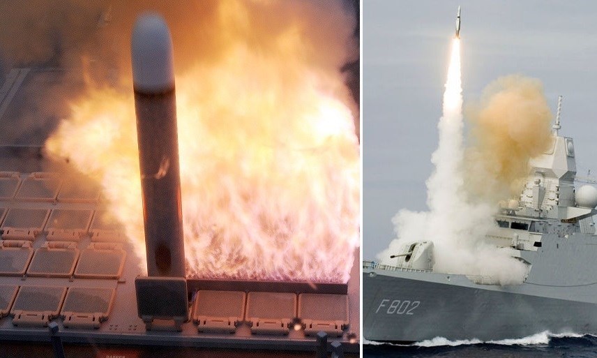 شلیک موشک پدافند هوایی (سمت راست) و کروز ضد اهداف زمینی (سمت چپ) از پرتابگرهای عمودی در ناوشکن‌های مدرن