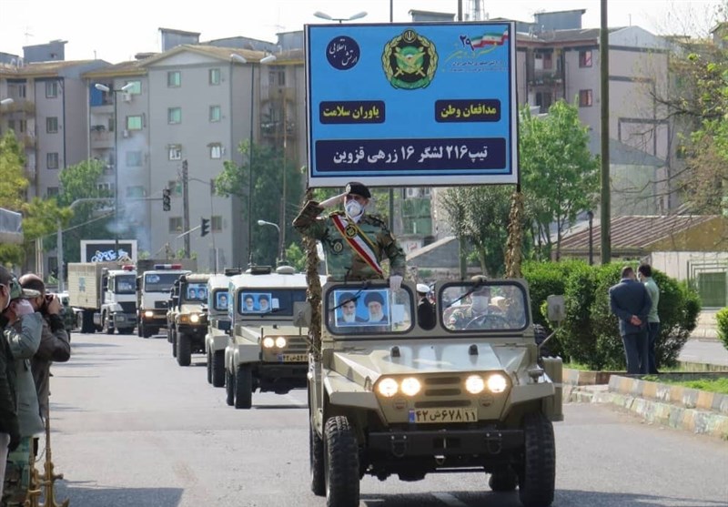 مراسم رژه پس از اَدای احترام مسئولان و فرماندهان به مقام شامخ شهدا آغاز شد و پس از آن هر یک از خودروهای خدماترسان ارتش در ایام شیوع ویروس از مقابل جایگاه ویژه عبور کردند و با اتحاد و همدلی گوشهای از توانمندیها و قدرت خود را به نمایش گذاشتند.
