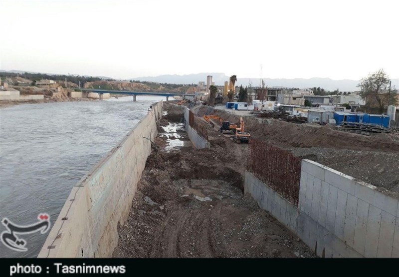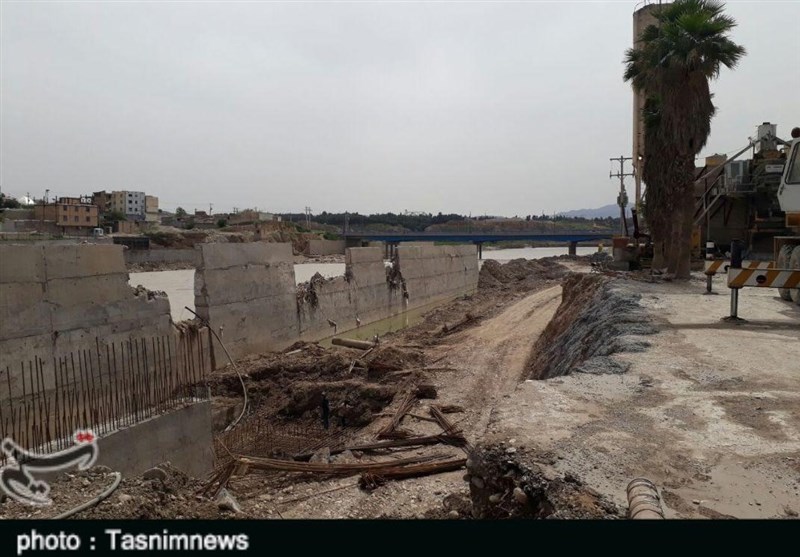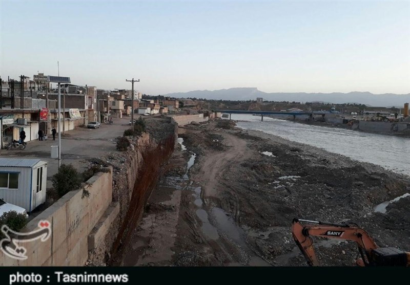 پیمانکار دیوار ساحلی شهر پلدختر عنوان کرد: در ورودی شهر پلدختر مرحله اول کارها انجام شده ودیواره آن بتنریزی شده است ولی به سبب اینکه در سیلاب ششم اسفند ماه آب رودخانه به طرف کارگاه تغییر جهت داده طی دو هفته ما مشغول خاک ریزی بودیم تا بتوانیم مسیر آب را تغییر دهیم.