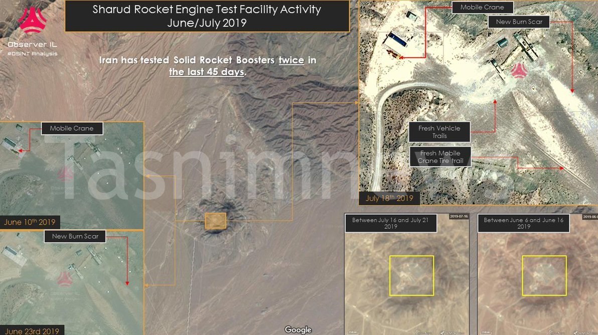 در تابستان سال 1398 ماهوارههای غربی تصاویر متعددی از آزمایش پیشرانهای سوخت جامد در محوطه آزمایش پایگاه ثبتشده فضایی سپاه منتشر نمودند. این امر نشان میداد که سپاه در حال ورود به مرحله بسیار مهمی از آمادهسازی پرتابگر فضایی سوخت جامد خود است که این آزمایشها را به انجام میرساند.